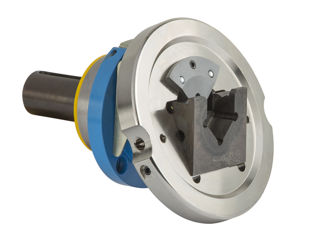 Con apertura y cierre por desplazamiento neumático de las mordazas, el plato de cierre puede ser fijo o rotante. Disponible en versión ligera o pesada. La mordaza puede ser de tipo cuadradillo+redondo o también de tipo cuadradillo+cuadradillo. Utilización con eje o con volante.